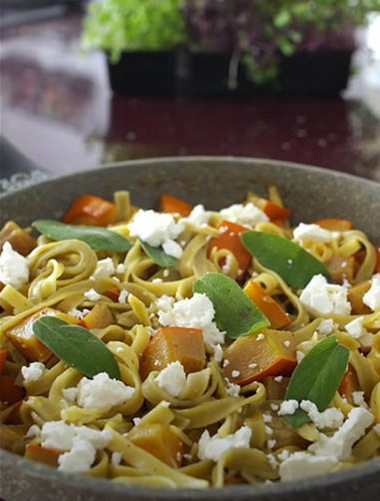 Fierbeți pastele conform ambalajului și după, adăugați-le peste dovleac.